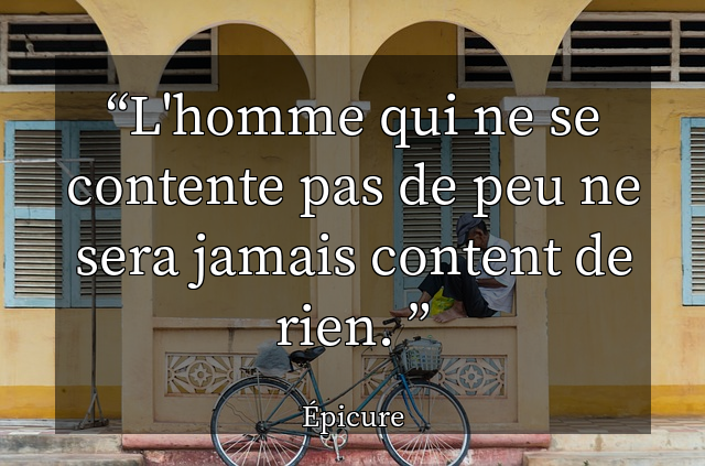Citation L'homme qui ne se contente pas de peu ne sera jamais content de rien. En images ... Previous Next Épicure Envoyez cette poésie à un ami × Infos - Le texte sera automatiquement ajouté à votre message Prénom Nom Votre email Email du destinataire Sujet Message Précédent Suivant Votes - - Commentaires Vous devez être connecté pour pouvoir écrire un commentaire Message Envoyer Publicité