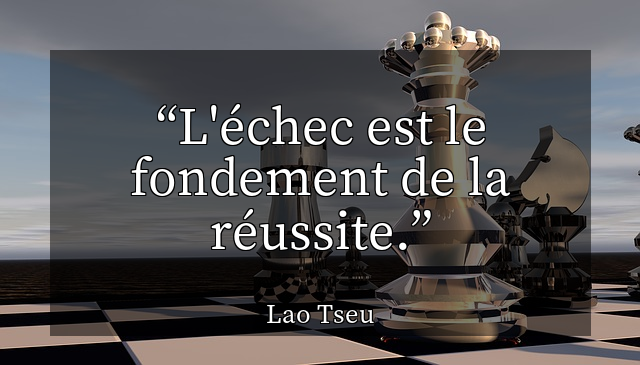 Citation L'échec est le fondement de la réussite. En images ... Previous Next Lao Tseu Envoyez cette poésie à un ami × Infos - Le texte sera automatiquement ajouté à votre message Prénom Nom Votre email Email du destinataire Sujet Message Précédent Suivant Votes - - Commentaires Vous devez être connecté pour pouvoir écrire un commentaire Message Envoyer Publicité