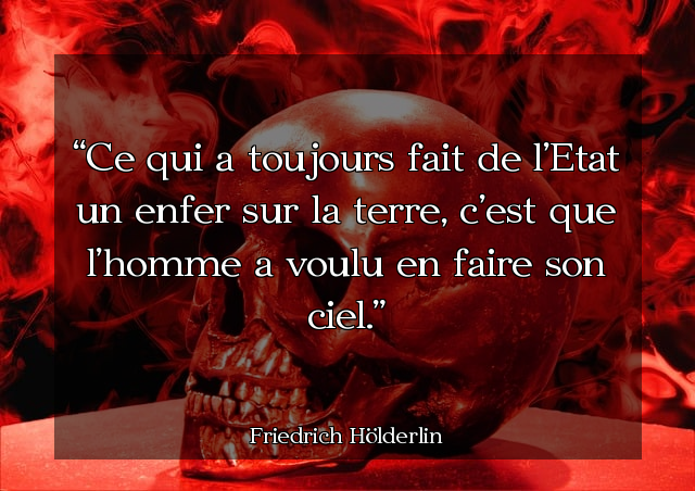 Ce qui a toujours fait de l'Etat un enfer sur la terre, c'est que l'homme a voulu en faire son ciel.
