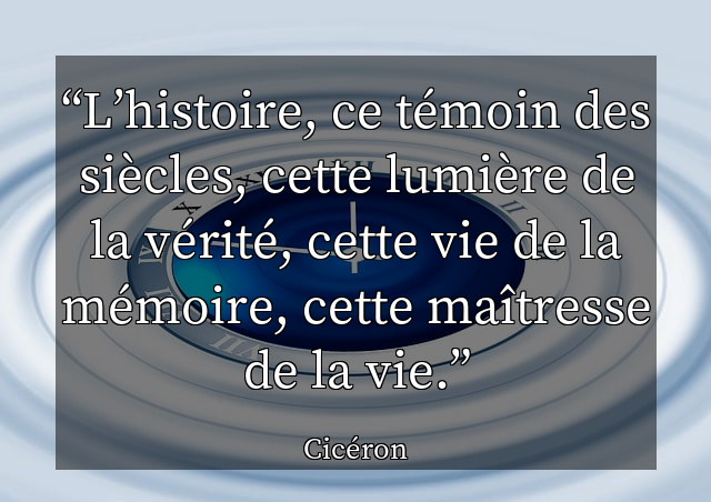 L’histoire, ce témoin des siècles, cette lumière de la vérité, cette vie de la mémoire, cette maîtresse de la vie.