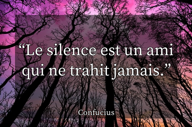 Citation Le silence est un ami qui ne trahit jamais. En images ... Previous Next Confucius Envoyez cette poésie à un ami × Infos - Le texte sera automatiquement ajouté à votre message Prénom Nom Votre email Email du destinataire Sujet Message Précédent Suivant Votes - - Commentaires Vous devez être connecté pour pouvoir écrire un commentaire Message Envoyer Publicité
